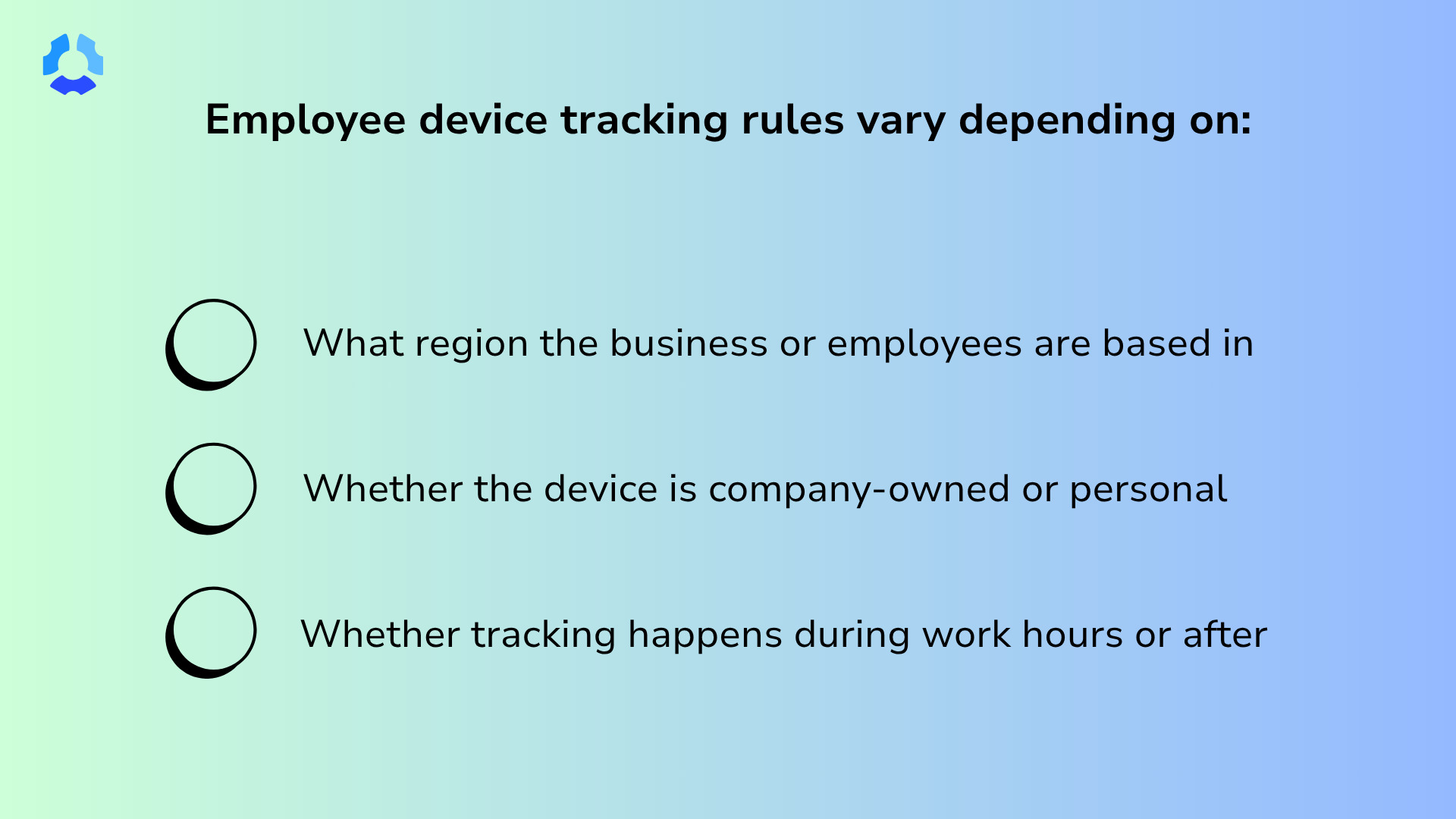 The legal landscape around employee device tracking is complex and constantly changing. Specific rules may vary depending on: