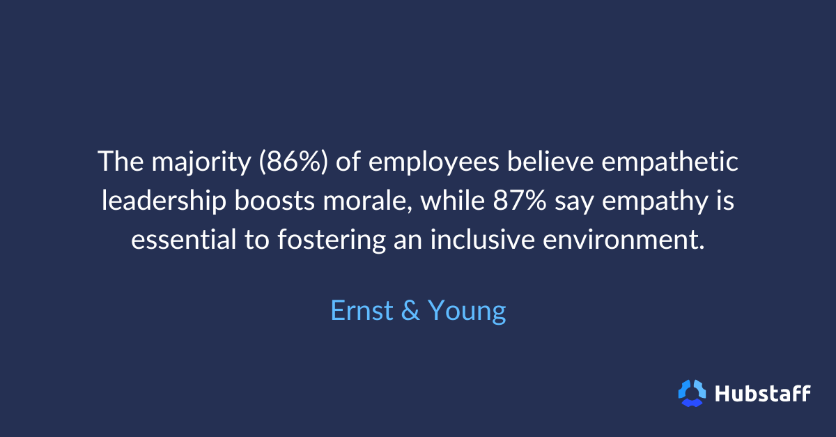 The image shows a stat on 86–87% of employees valuing empathetic leadership, attributed to Ernst & Young.