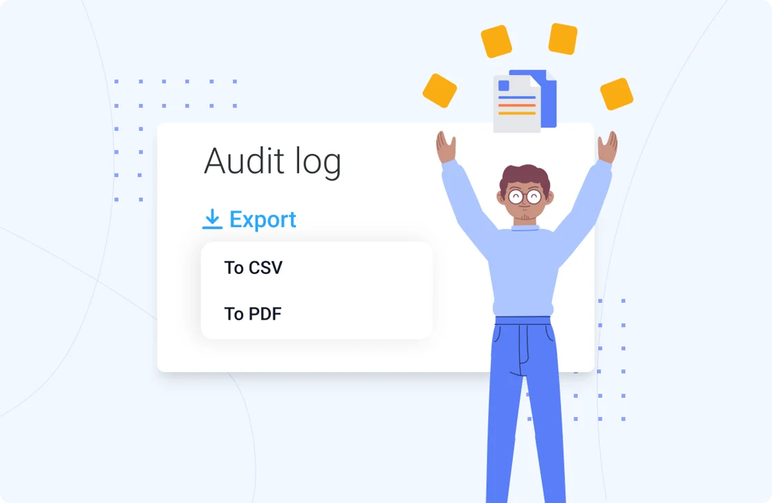 You can now export your audit log directly from the report page—choose CSV or PDF to quickly save, share, or archive key account activity for better visibility and compliance.