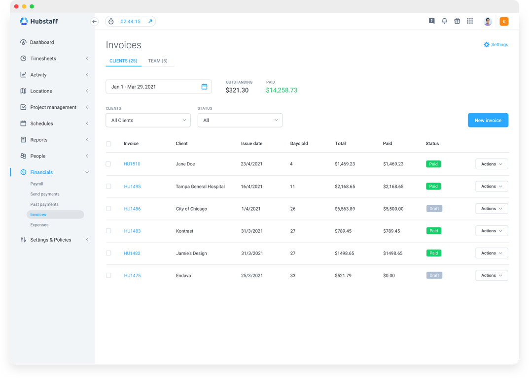 Get full access to invoicing and payment features when you try Hubstaff for 14 days. No credit card required. Cancel anytime.